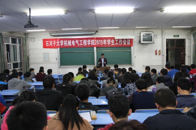 2015年3月27日晚8:30,学院在北区绿三101教室召开学生工作会议,学院党委书记成斌老师、分管学生工作的院党委副书记周生江老师、全体辅导员、班主任以及学生党支部书记、团委学生会干部、班干部参加了此次会议。