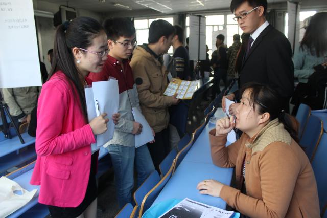 招聘会现场,本次招聘会是主要面向2015届机电类毕业生,涉及机电、农学、土木、人力资源、工商管理、化工、英语、数控、计算机、市场营销、电子商务等专业大类。30余家用人单位为广大即将毕业的学生提供了600余就业岗位,吸引了来自不同学院、不同专业的学生前来应聘,参会学生达300多人。据不完全统计,签约学生6人,达成就业意向的学生47人。
